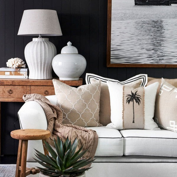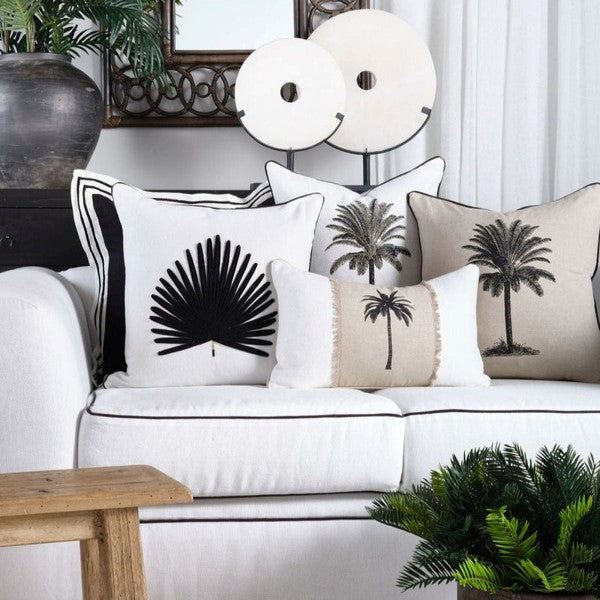 Palm Tree Off White Embroidery Square Cushion